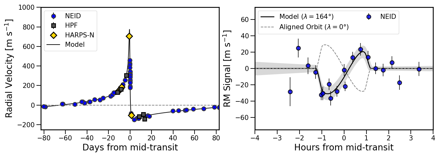 I am contributing an effort to increase the sample of known warm Jupiters by vetting and following up long-period exoplanet candidates detected by the TESS mission. As more and more of these systems are discovered and characterized, we should be able to better map out their formation histories, both at the population level and, in some cases, for individual systems. This program falls under the umbrella of the TESS Single-Transit Exoplanet Candidate working group, led by Diana Dragomir at UNM. For my own work, I rely heavily on the NESSI speckle imaging camera, with which I vet candidates and identify potential false positives, and the NEID spectrograph, which provides state-of-the-art radial velocity measurements to measure planet masses and constrain their orbits.